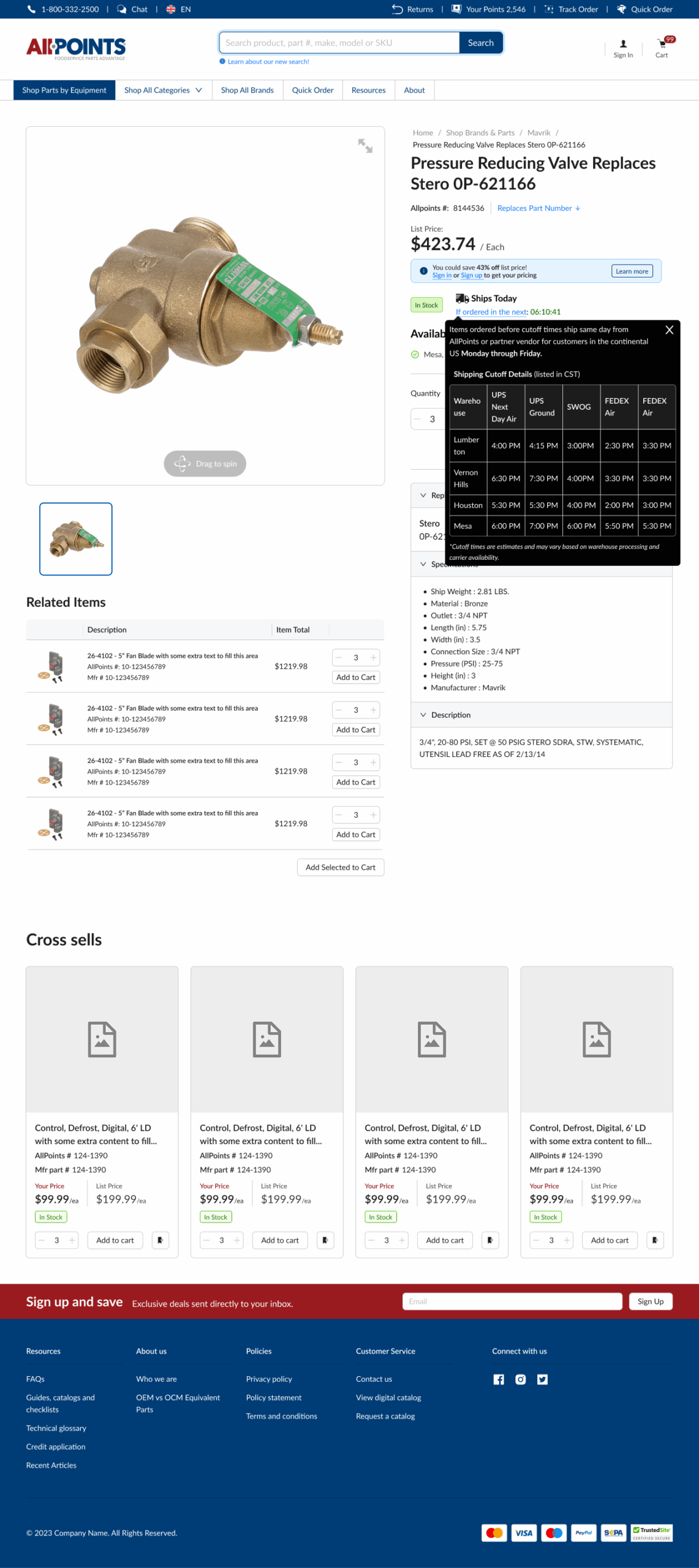 AllPoints customers making urgent purchases need to know immediately whether a part can arrive today. Without clear, trustworthy messaging, customers hesitate on time-sensitive orders. The existing inventory display didn’t communicate fulfillment speed or cutoff times, leaving customers uncertain about delivery windows.